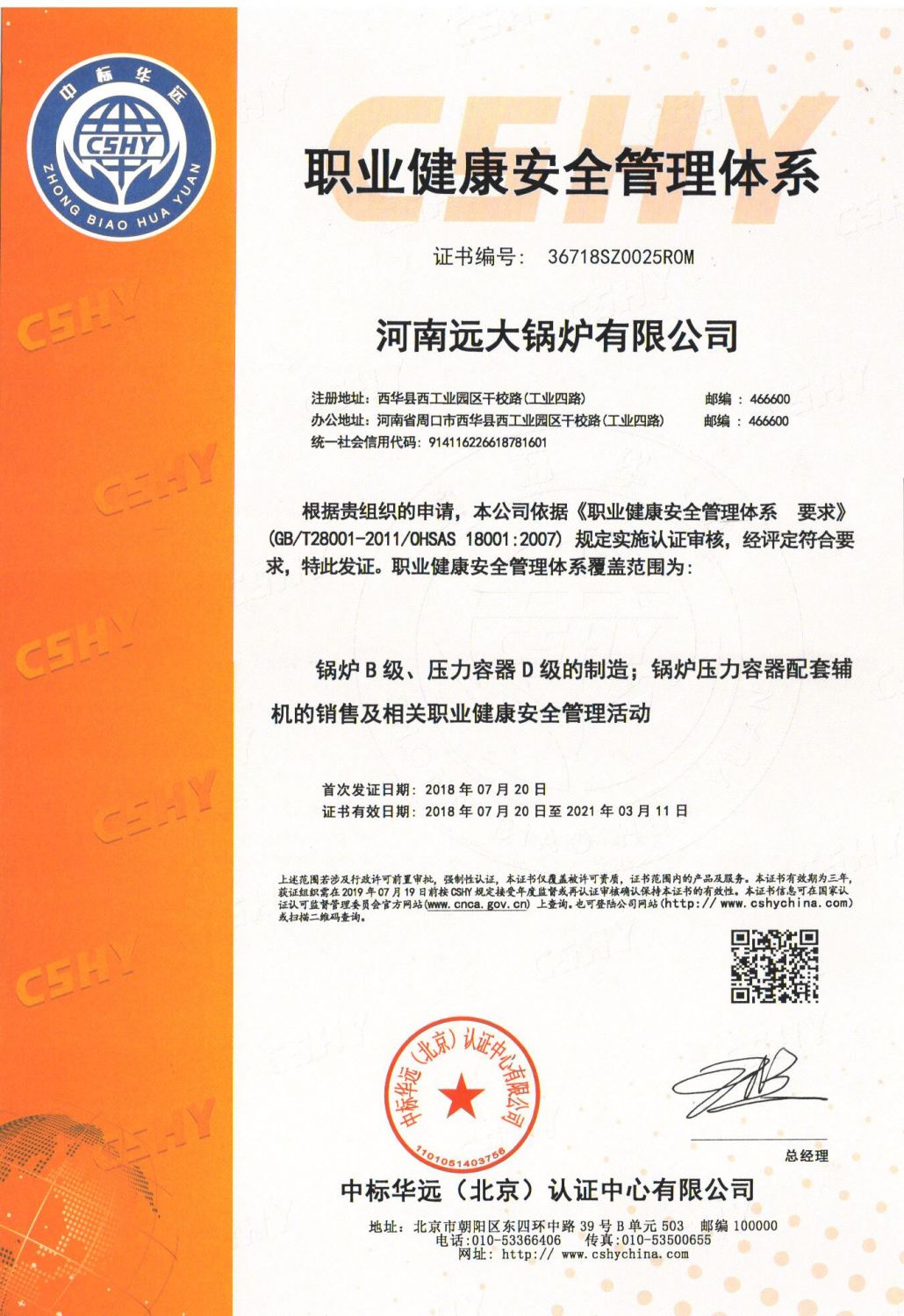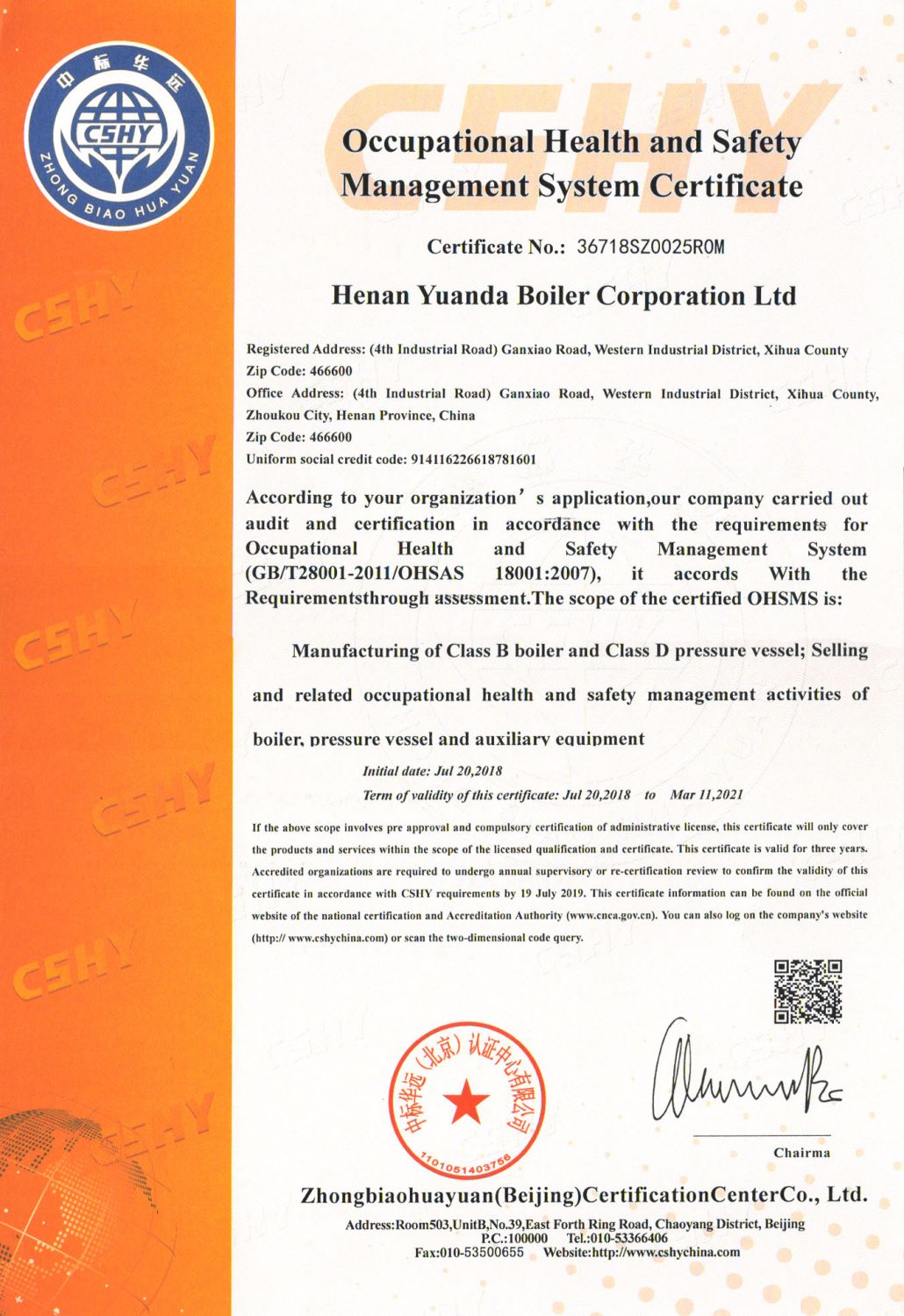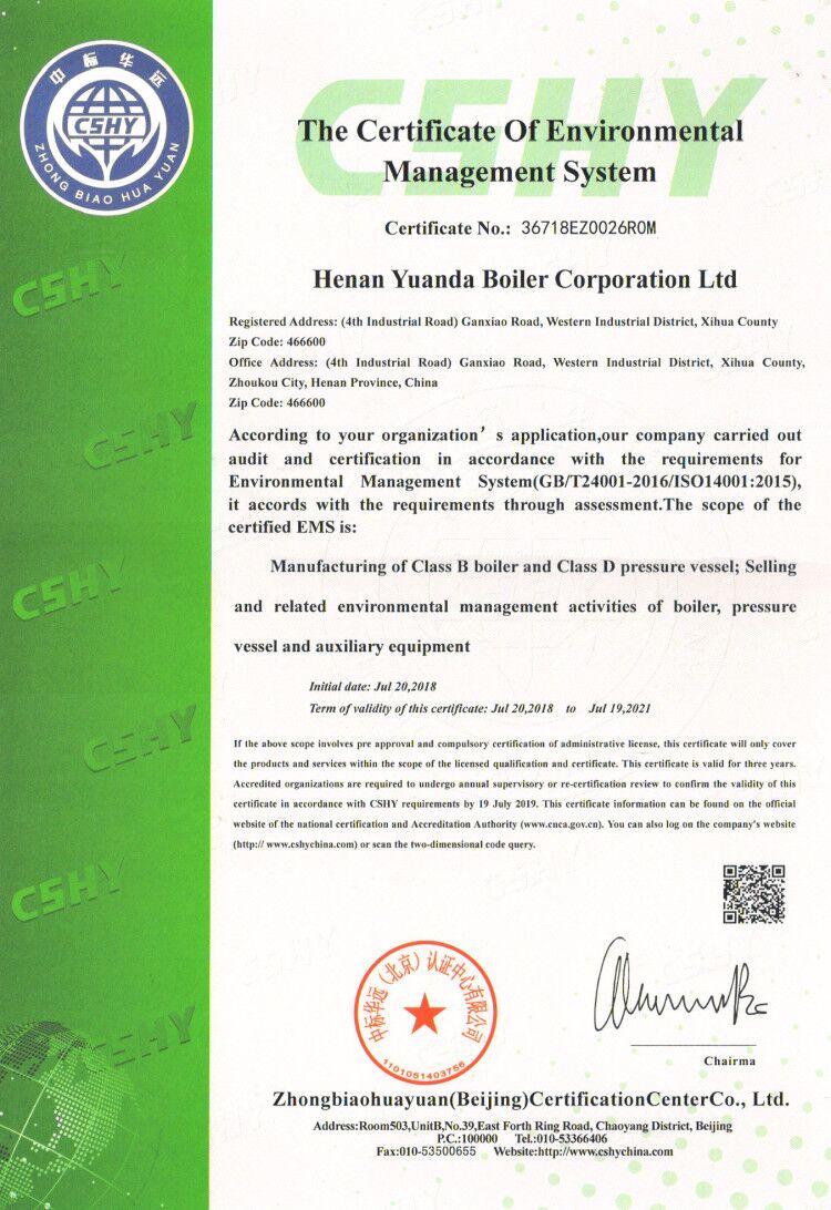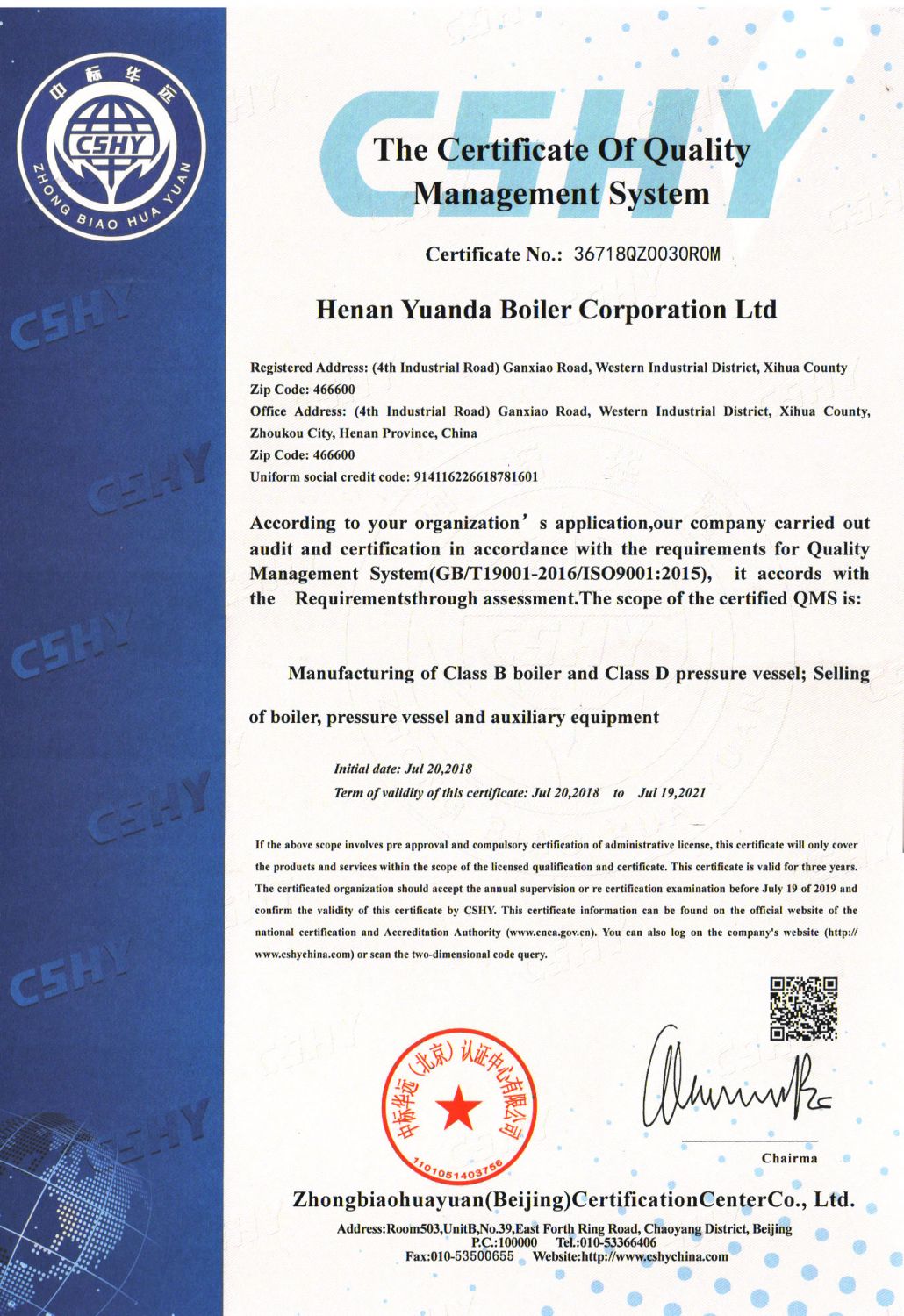 公司具備國家A級鍋爐制造資質(zhì)、D級壓力容器設(shè)計(jì)及制造資質(zhì),并通過ISO9001質(zhì)量管理體系認(rèn)證、ISO14001環(huán)境管理體系認(rèn)證、OHSAS18001職業(yè)健康安全管理體系認(rèn)證。